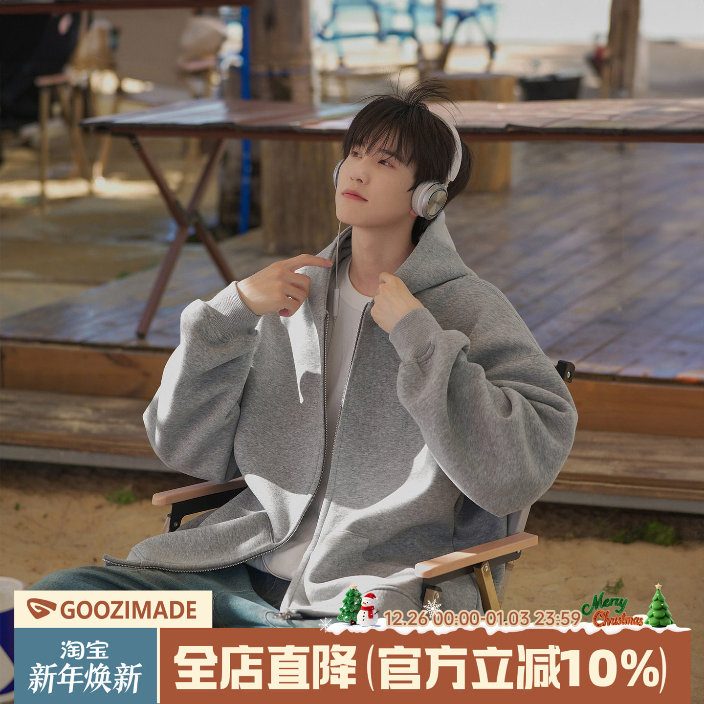 明星同款港仔文艺男420g重磅开衫卫衣男冬季加绒加厚男生连帽外套