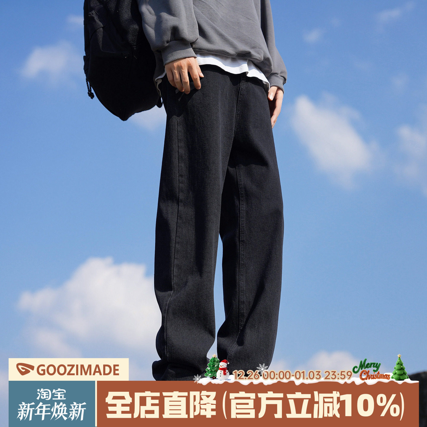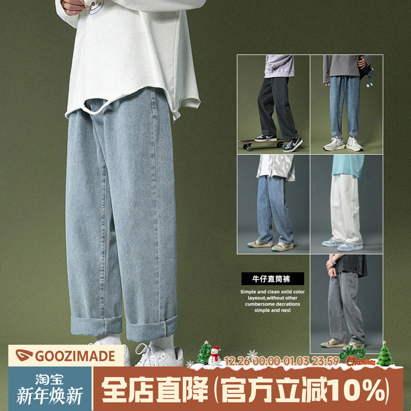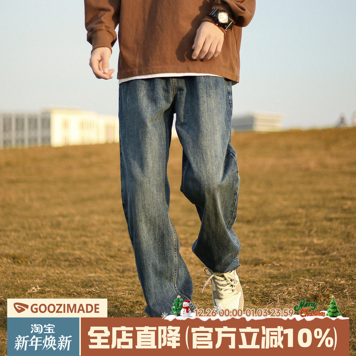 @港仔文艺男 牛仔裤男直筒宽松秋冬男生加绒加厚男士阔腿裤子男款