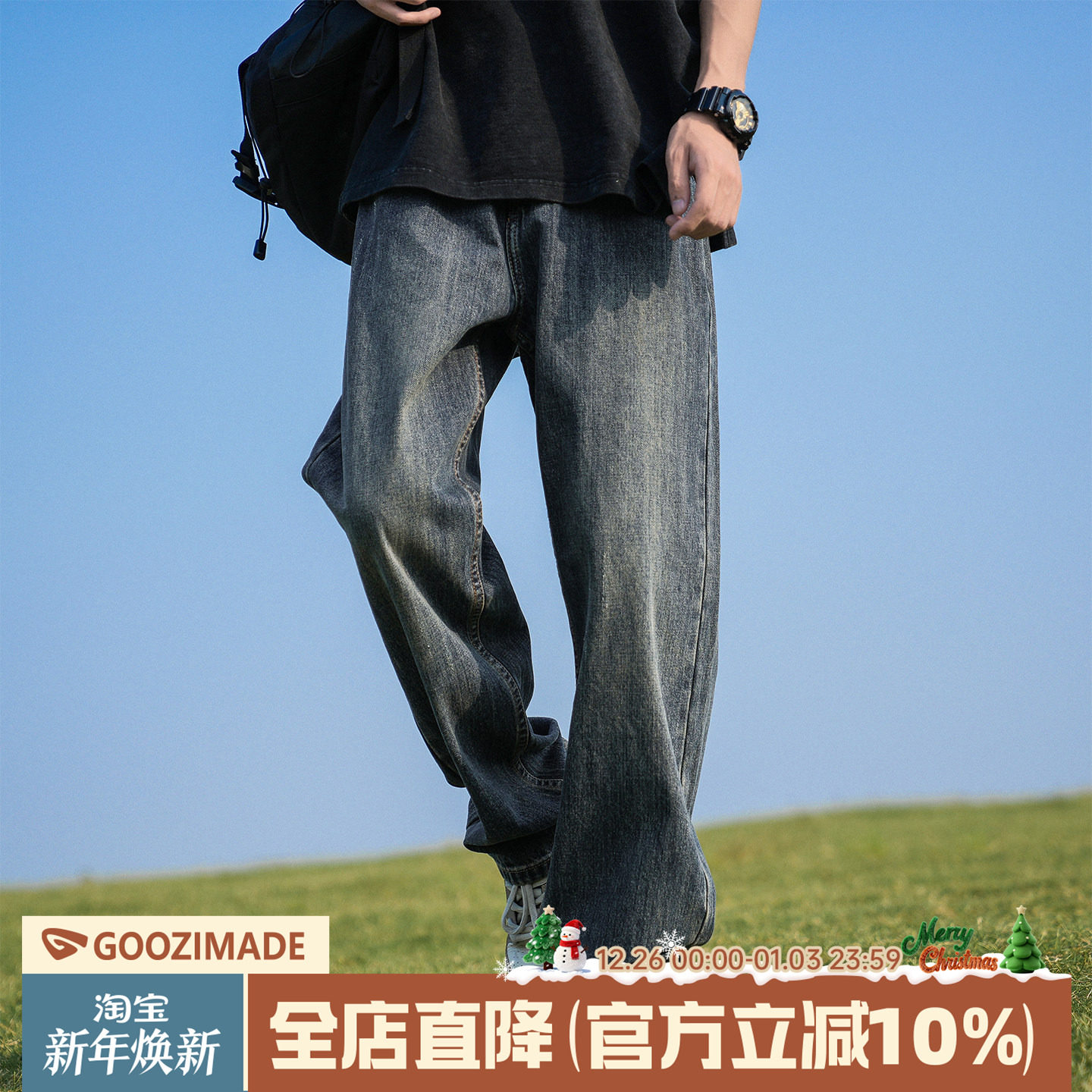 @港仔文艺男 美式牛仔裤男2026新款秋冬水洗做旧长裤抽绳休闲裤子
