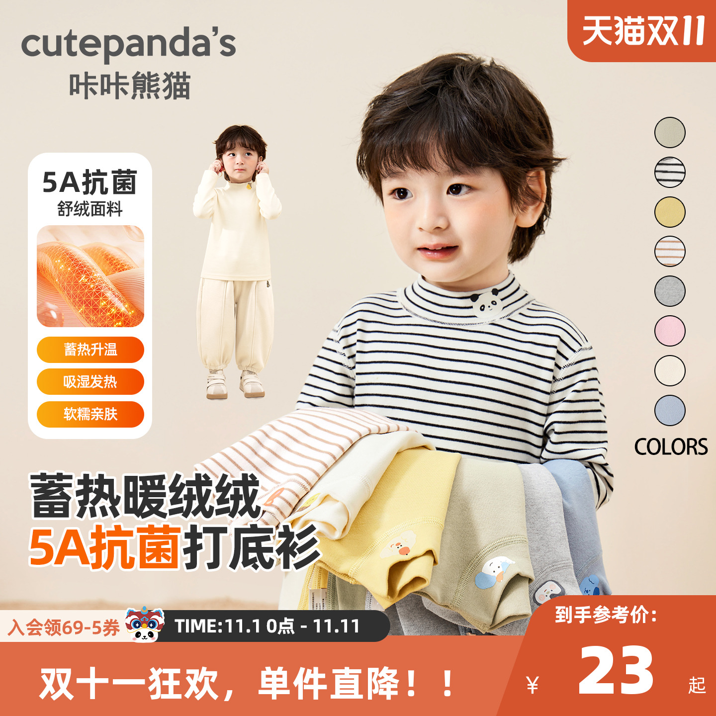 咔咔熊猫男童保暖打底衫宝宝女童儿童秋冬秋衣上衣冬装长袖t恤潮