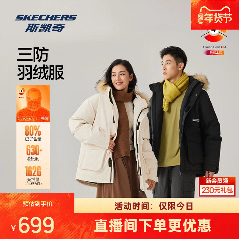 斯凯奇短款三防羽绒服冬季男女棉服加厚保暖防风休闲羽绒运动外套