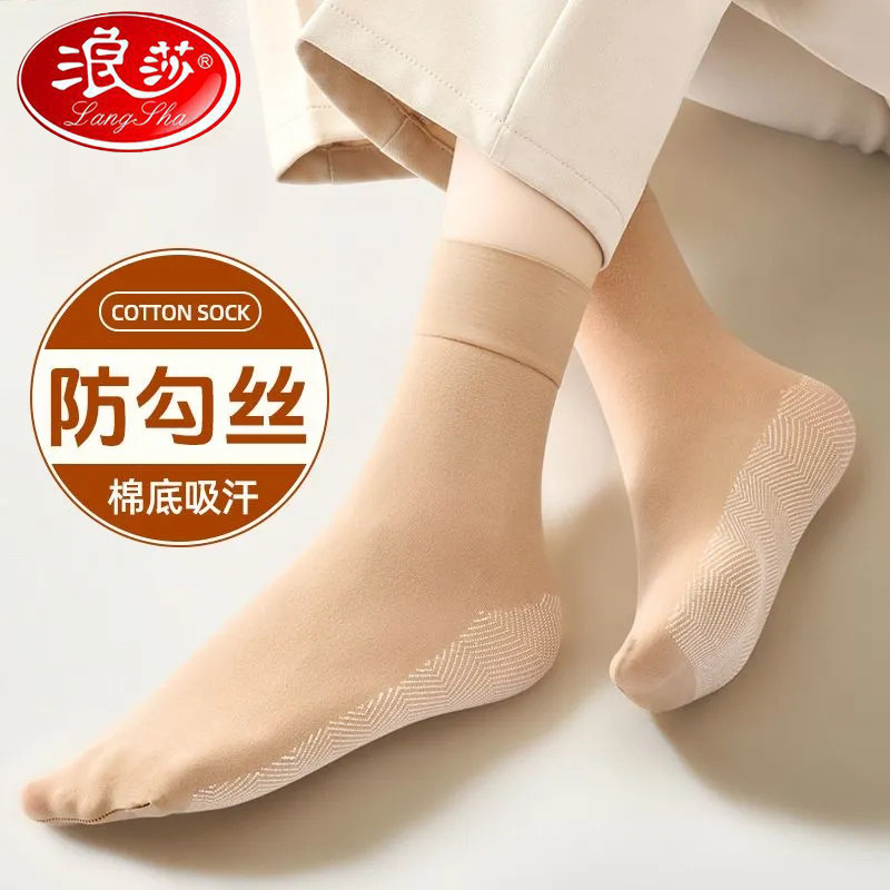 浪莎天鹅绒短袜棉底丝袜春秋冬季女袜纯棉防滑袜子女短丝袜春夏季