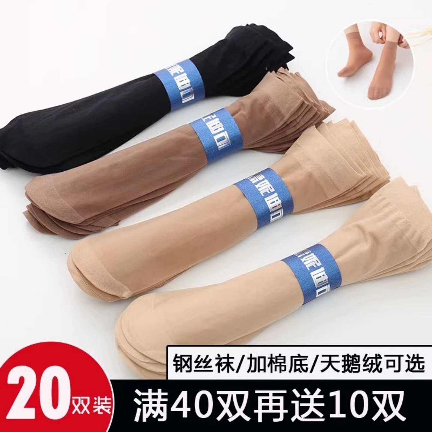 短丝袜女士袜子夏季新款女款天鹅绒短钢丝袜短袜女式透明肤色女袜