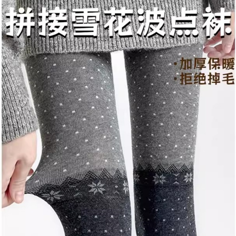 圣诞雪花点点打底裤女秋冬季加厚羊绒保暖灰色连裤袜显瘦打底袜子