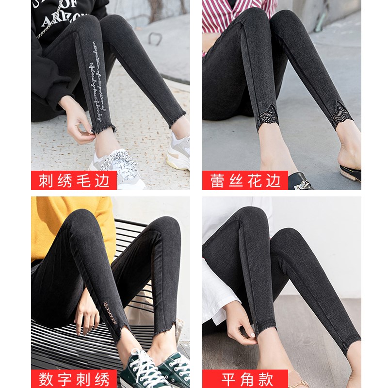 仿牛仔雪花小个子八分打底裤女外穿高腰显瘦九分铅笔弹力紧身百搭