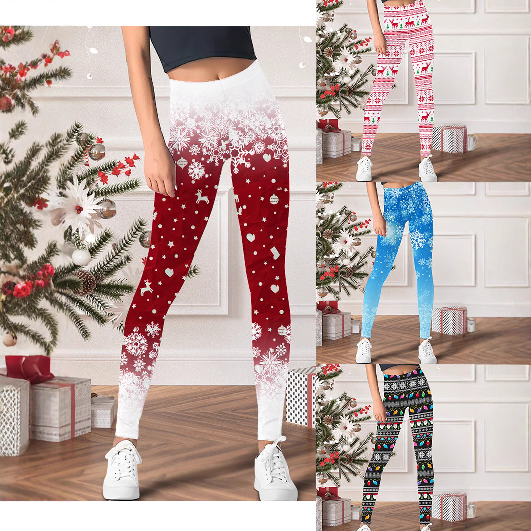Christmas women's leggings圣诞节女士打底裤欢庆雪花印花欧美裤