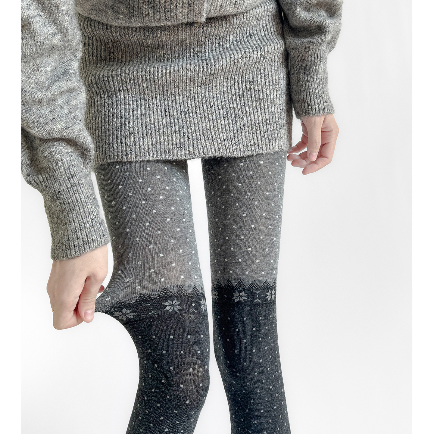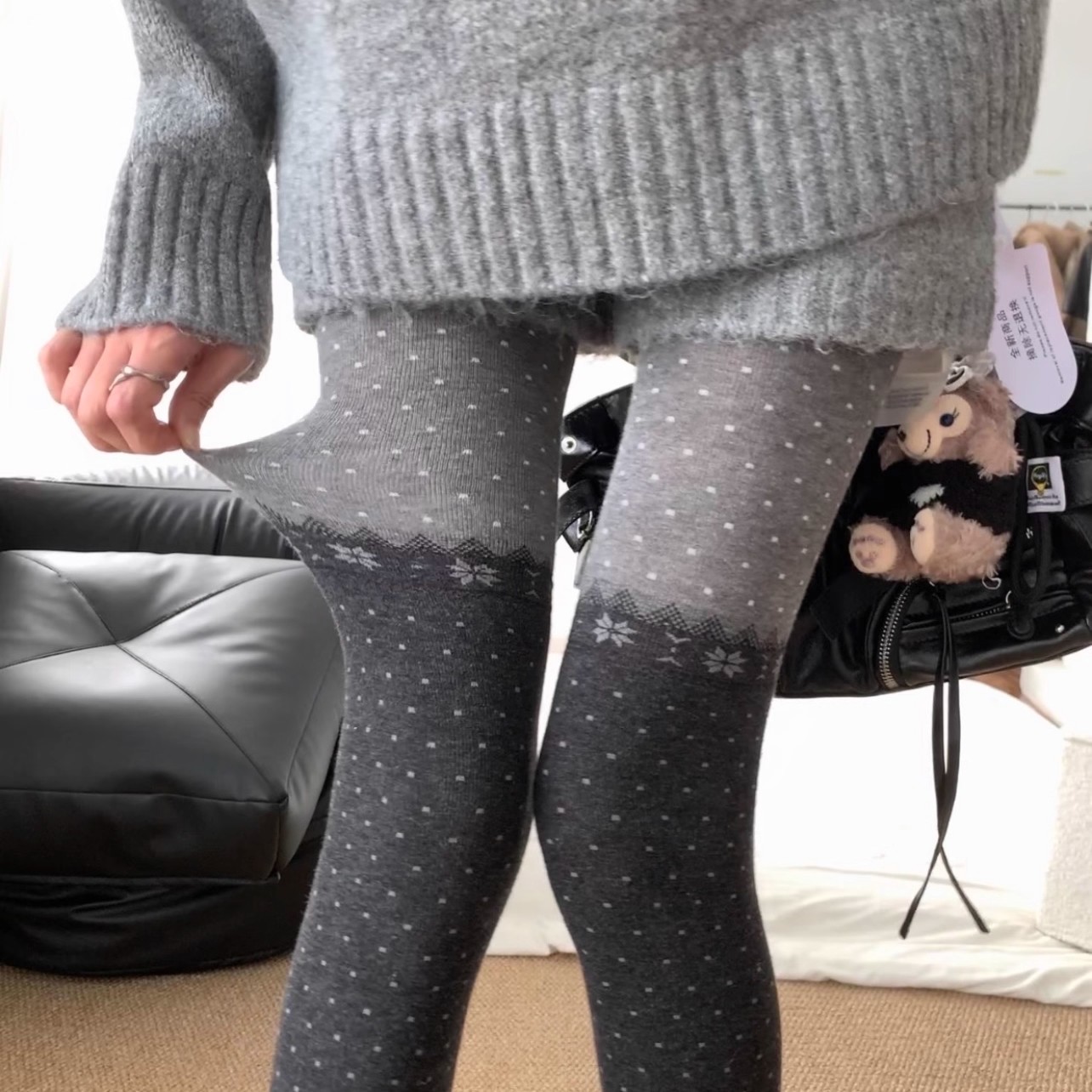 AYTofilms 圣诞氛围秋冬连裤袜雪花点点拼接灰色波点费尔岛打底裤