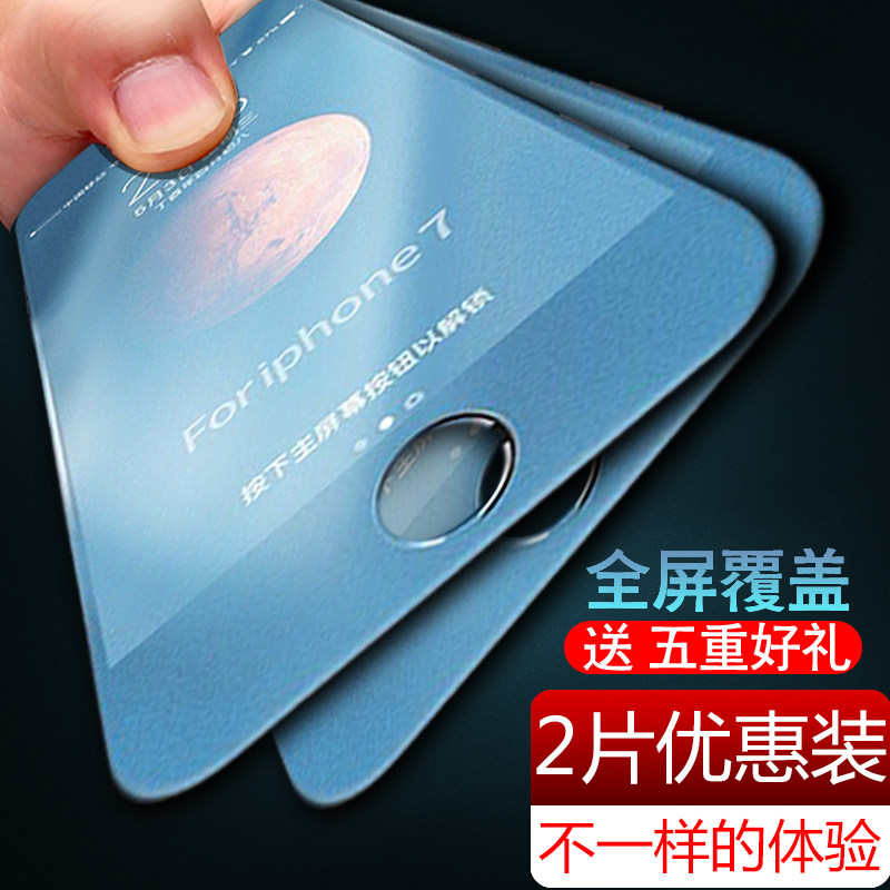 苹果7plus钢化膜8plus/6PLUS全屏覆盖防摔爆玻璃6s无白边4.7英寸抗指纹iphone5.5英寸正装高清保护壳手机贴膜