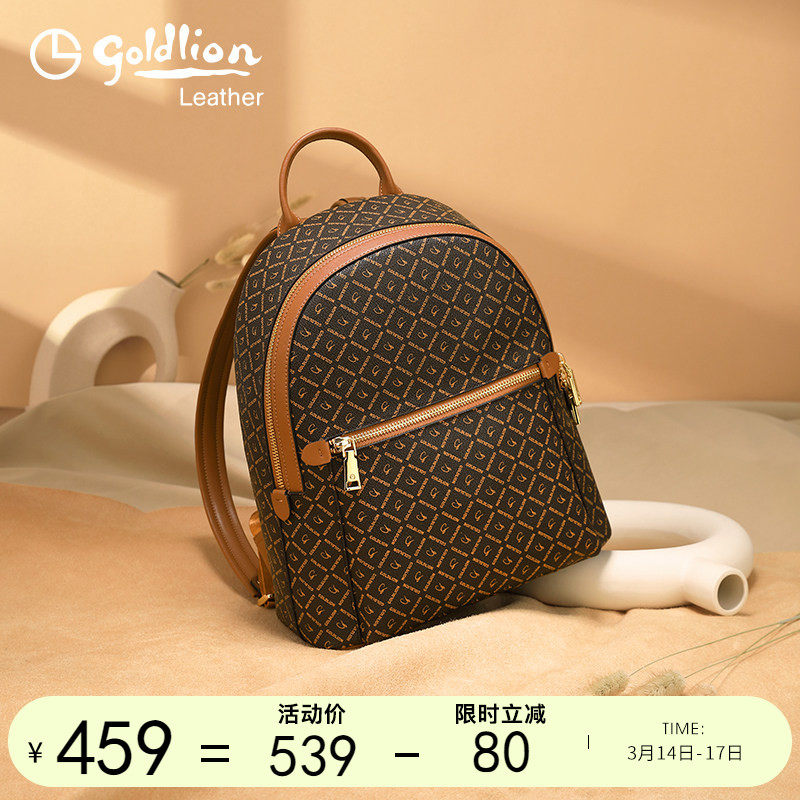 金利来优雅复古女包背包PVC高品质印花双肩包女士通勤小包百搭潮