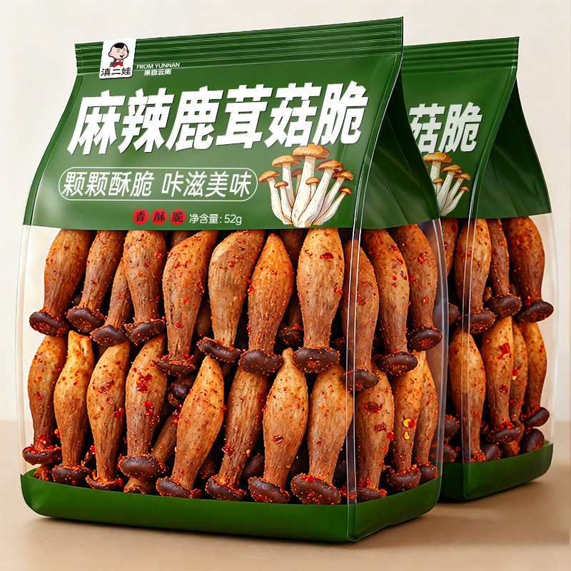 滇二娃即食云南特产鹿茸菇脆休闲解馋香菇脆片零食办公室解馋小吃