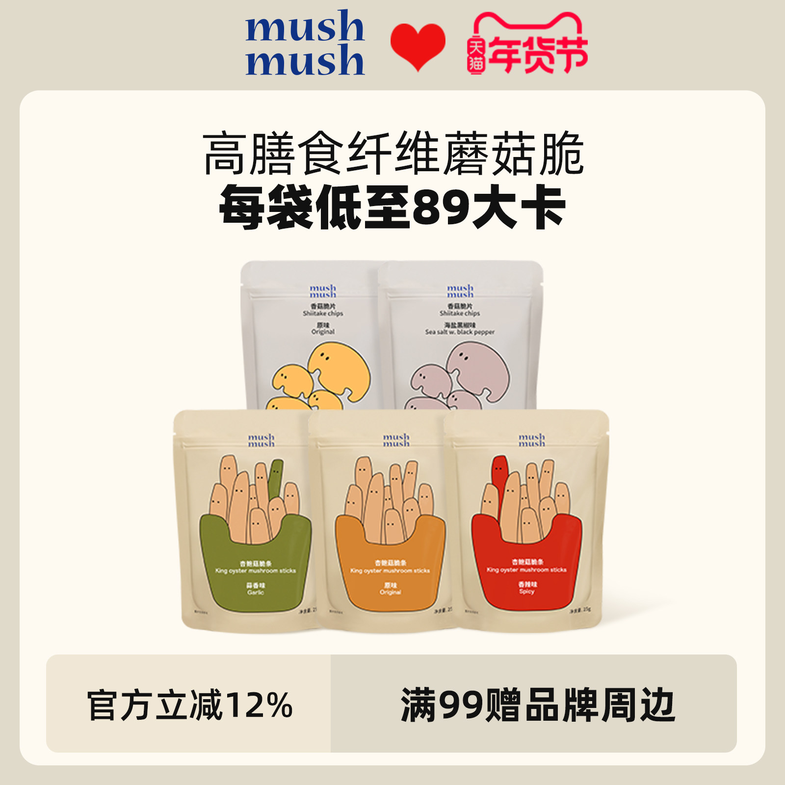 mushmush杏鲍菇脆条即食香菇脆片蘑菇干孕妇办公室休闲小吃零食