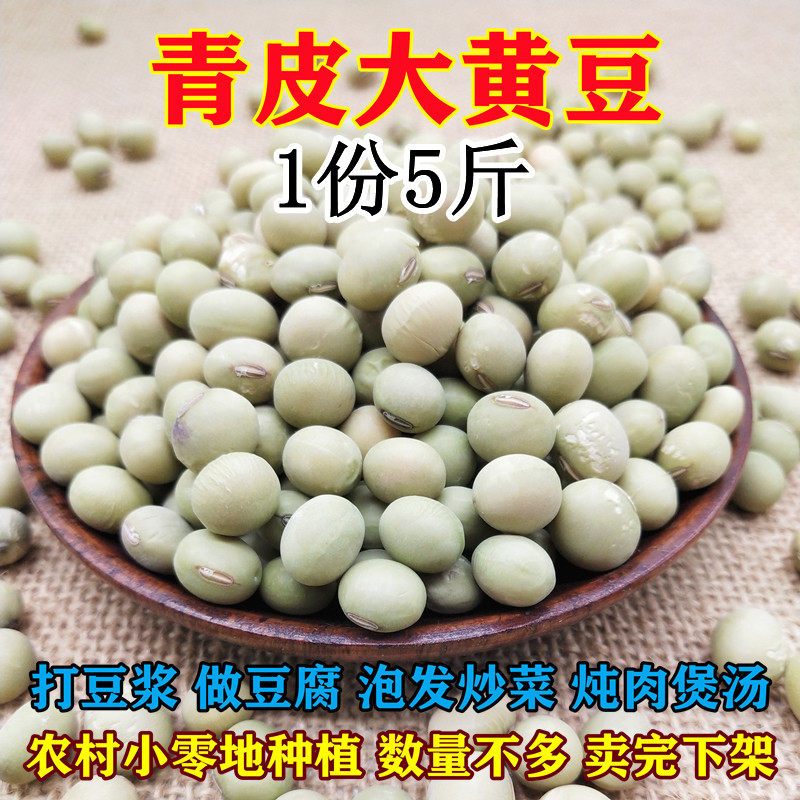 新黄豆5斤农家自种青皮大黄豆椭圆形土黄豆老品种单青豆黄心大豆
