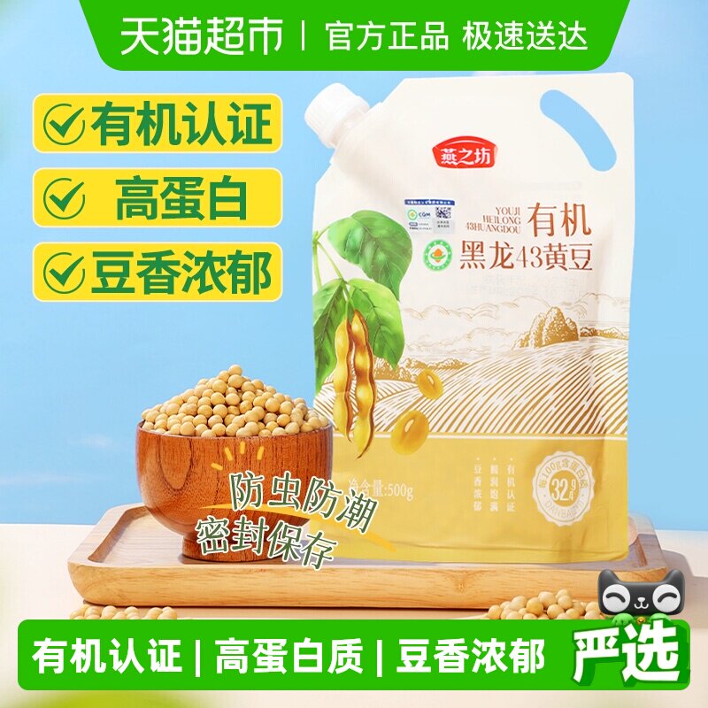 燕之坊有机黑龙43黄豆500g大豆非转基因农家黄豆打豆浆专用豆子新