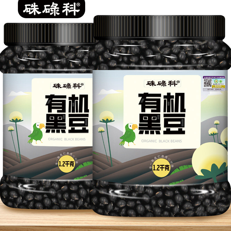 硃碌科东北有机黑豆1.2kg/罐绿芯黑大豆黑皮青仁打豆浆专用绿心豆