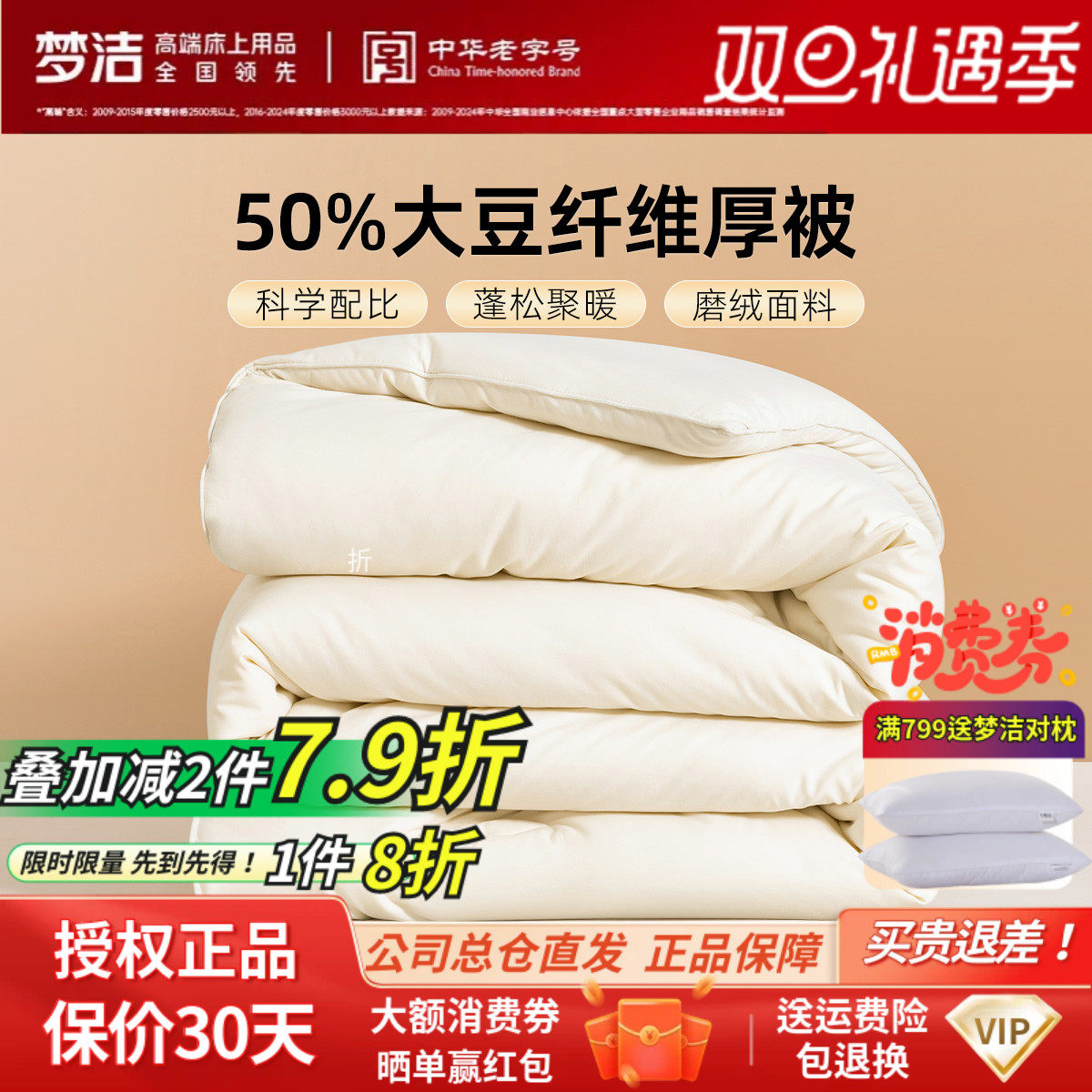 梦洁被子A类大豆纤维被春秋被抗菌冬被芯学生二合一子母夏被纯棉