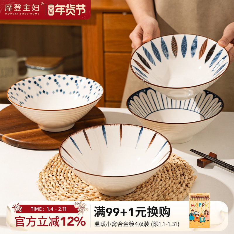 摩登主妇拉面碗家用2026新款高级感汤面碗吃面大碗斗笠面条碗餐具