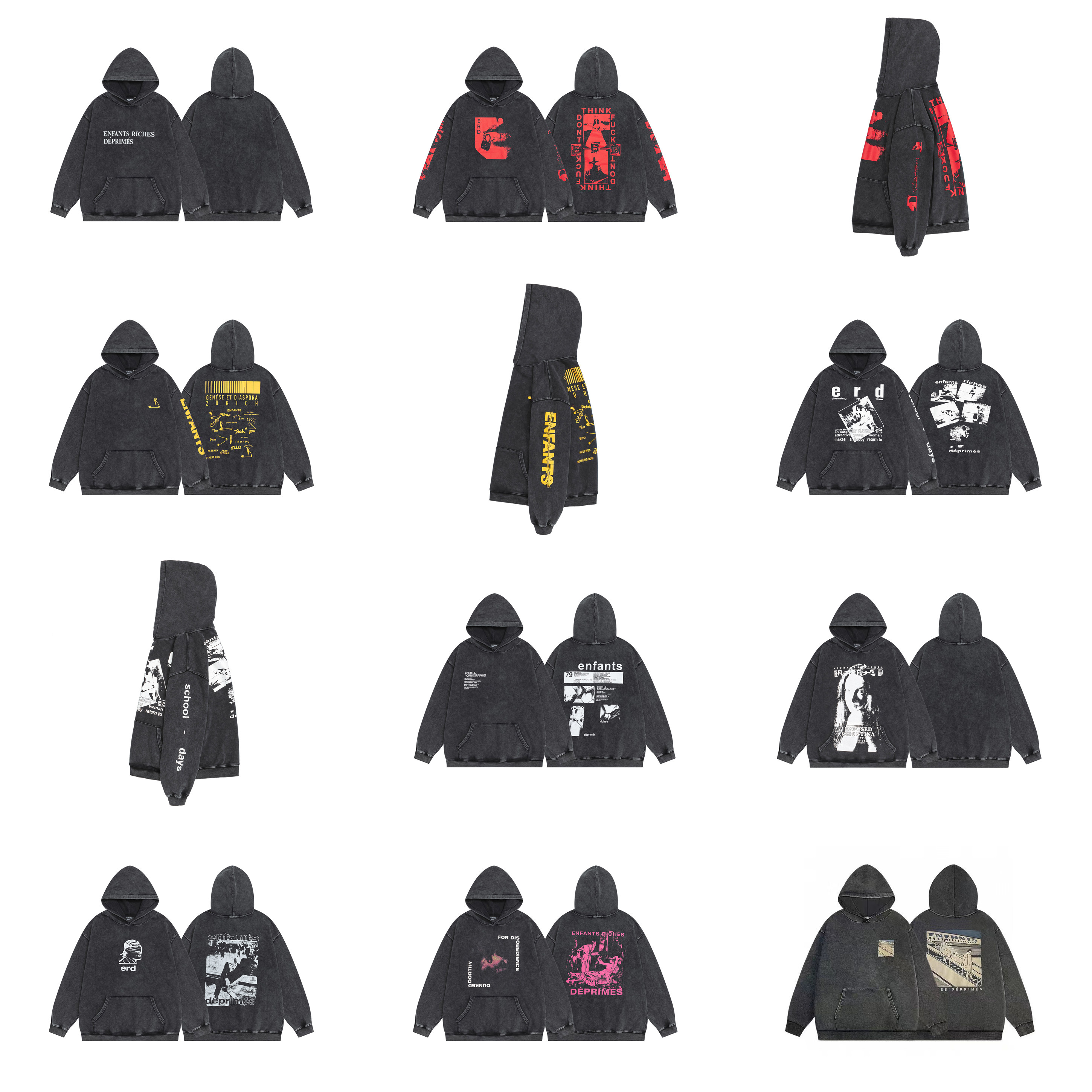 ERD忧郁的富二代欧美高街潮牌复古做旧洗水印花重磅纯棉连帽卫衣