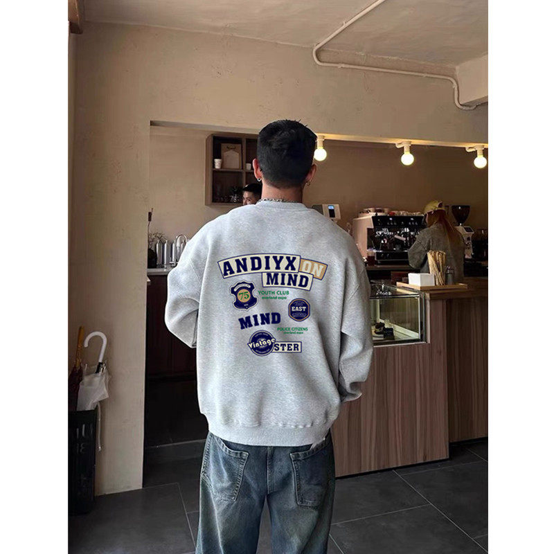 欧美潮牌hiphop痞帅字母无帽卫衣男女秋冬高级感内搭打底加绒上衣