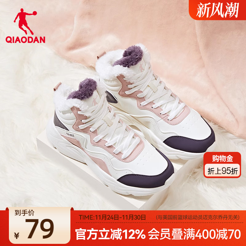 乔丹女鞋高帮加绒棉鞋秋冬款二棉运动鞋女增高防滑女鞋保暖滑板鞋