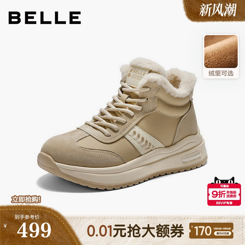 百丽女鞋复古高帮加绒阿甘鞋冬季棉鞋厚底雪地靴休闲短靴E5V1DDD5