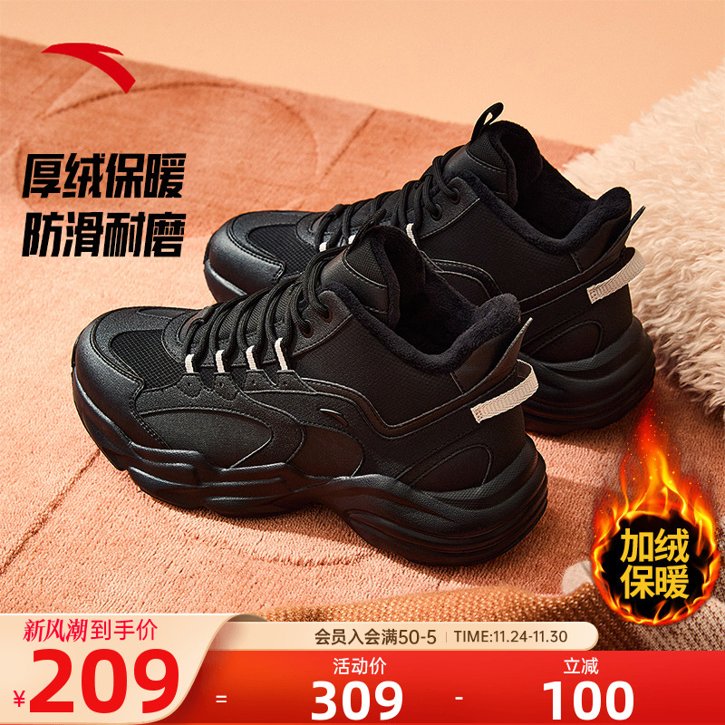安踏加绒女鞋冬季加厚保暖棉鞋高帮皮面外穿雪地靴厚底休闲运动鞋