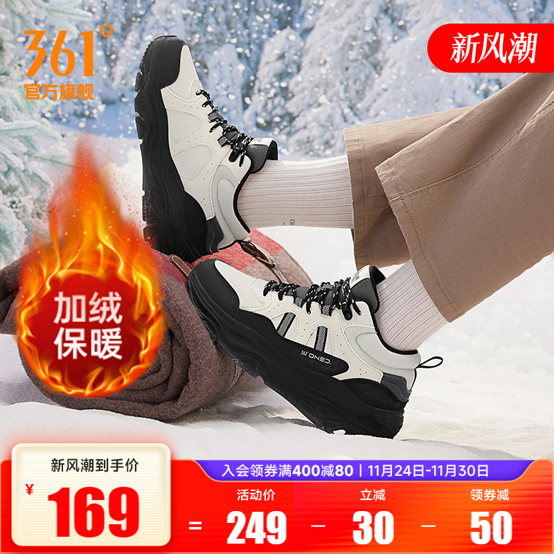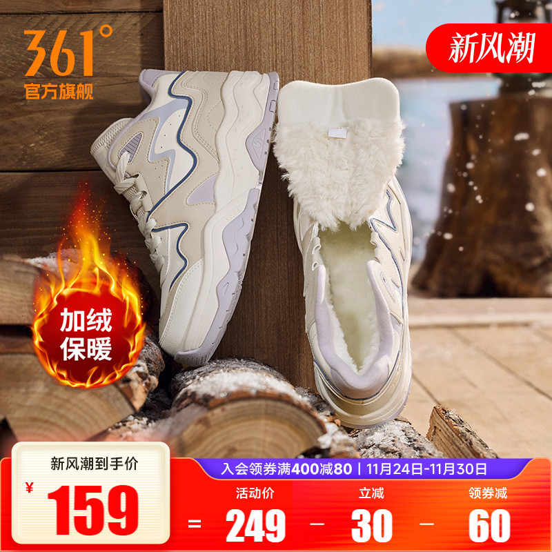 骨头鞋361加绒女鞋运动鞋2025冬季新款加毛休闲鞋大棉鞋高帮板鞋