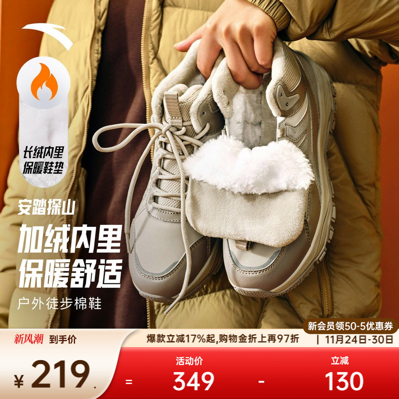 安踏探山棉鞋丨加绒加厚高帮休闲女鞋2025冬季新款保暖户外运动鞋