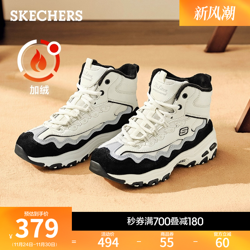 斯凯奇秋冬女鞋厚底增高弹高帮老爹鞋柔软舒适加绒保暖休闲运动鞋