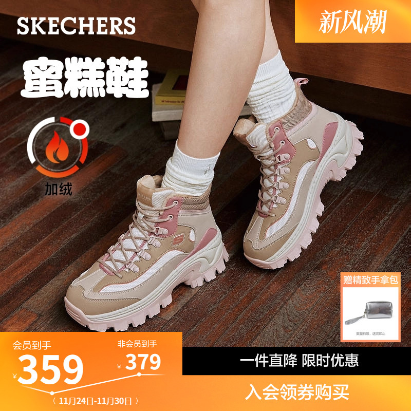 斯凯奇高帮蜜糕鞋|冬女鞋棉鞋加绒保暖休闲运动鞋厚底增高老爹鞋