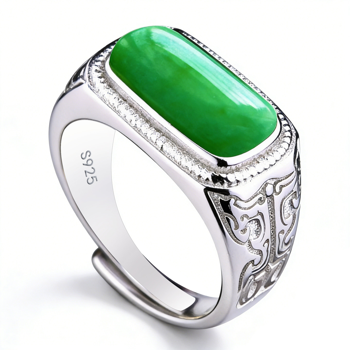 S925纯银男士戒指空托镶嵌蜜蜡绿松石琥珀diy银饰宝石底座托22*29