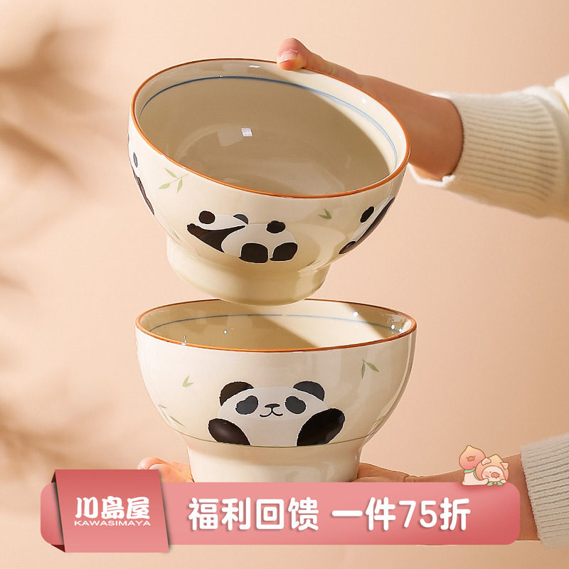川岛屋熊猫拉面碗家用2025新款陶瓷泡面碗个人专用汤面碗大号汤碗