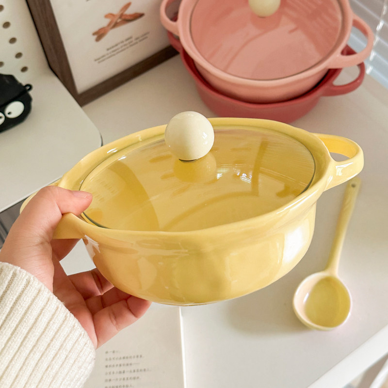 亮面双耳碗陶瓷泡面碗家用螺蛳粉面碗奶油风汤碗酸奶碗水果沙拉碗