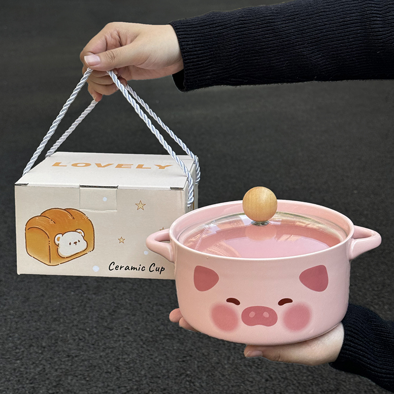 ins风可爱陶瓷泡面碗带盖双耳螺蛳粉碗送女生生日礼物闺蜜伴手礼