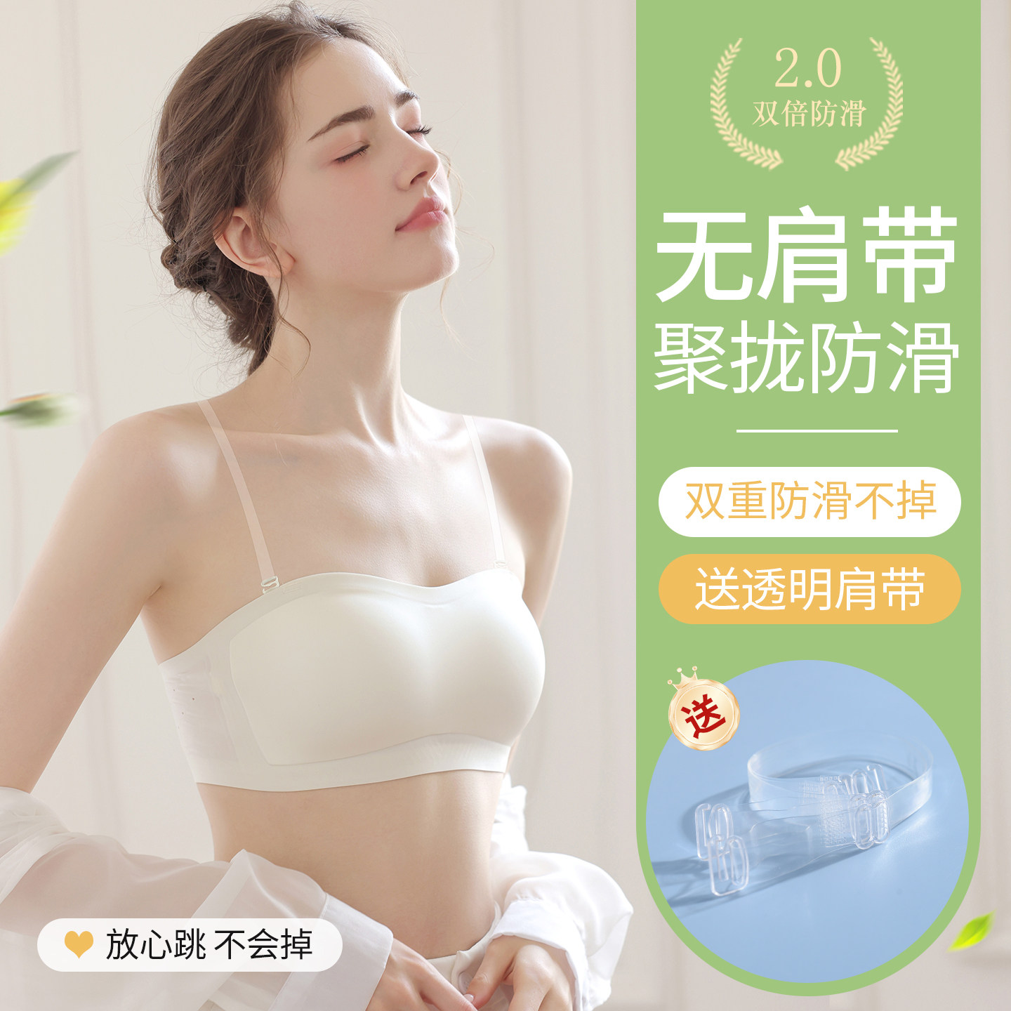 隐形无肩带抹胸内衣女防滑聚拢粉底液无痕裹胸防走光文胸罩不下滑