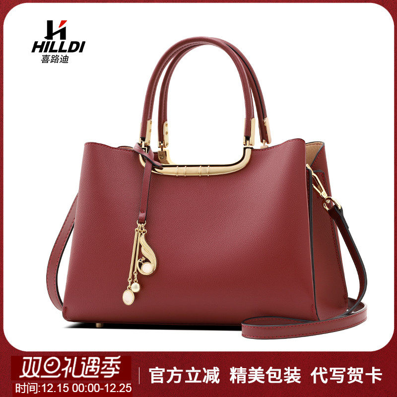 - 牛皮手提斜挎女包