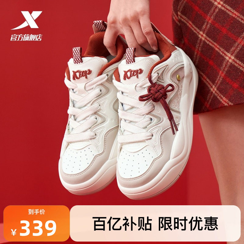 特步征程板鞋女鞋2026春季新款新年红色鞋情侣保暖休闲运动鞋男款