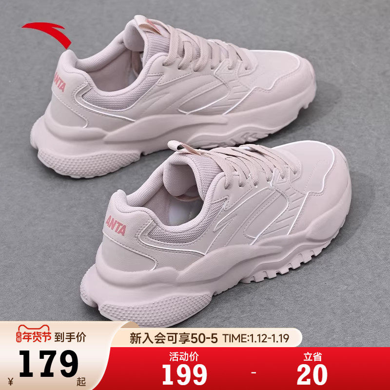 安踏女鞋运动鞋女款2025新款缓震回弹厚底软底休闲鞋妈妈跑步鞋子