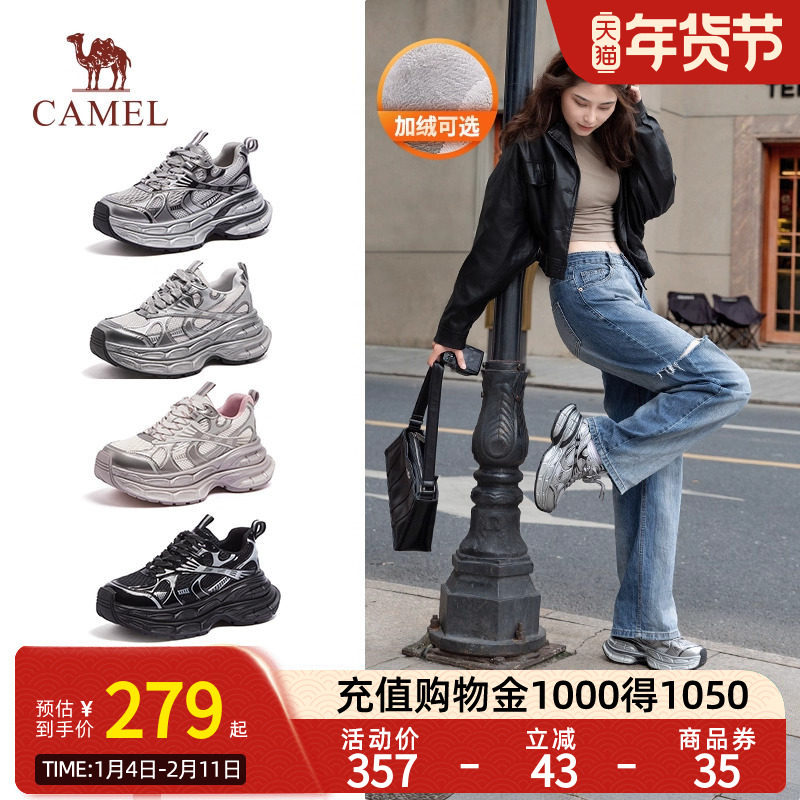 Camel骆驼老爹鞋银月女鞋秋冬新款复古运动鞋加绒厚底增高休闲鞋