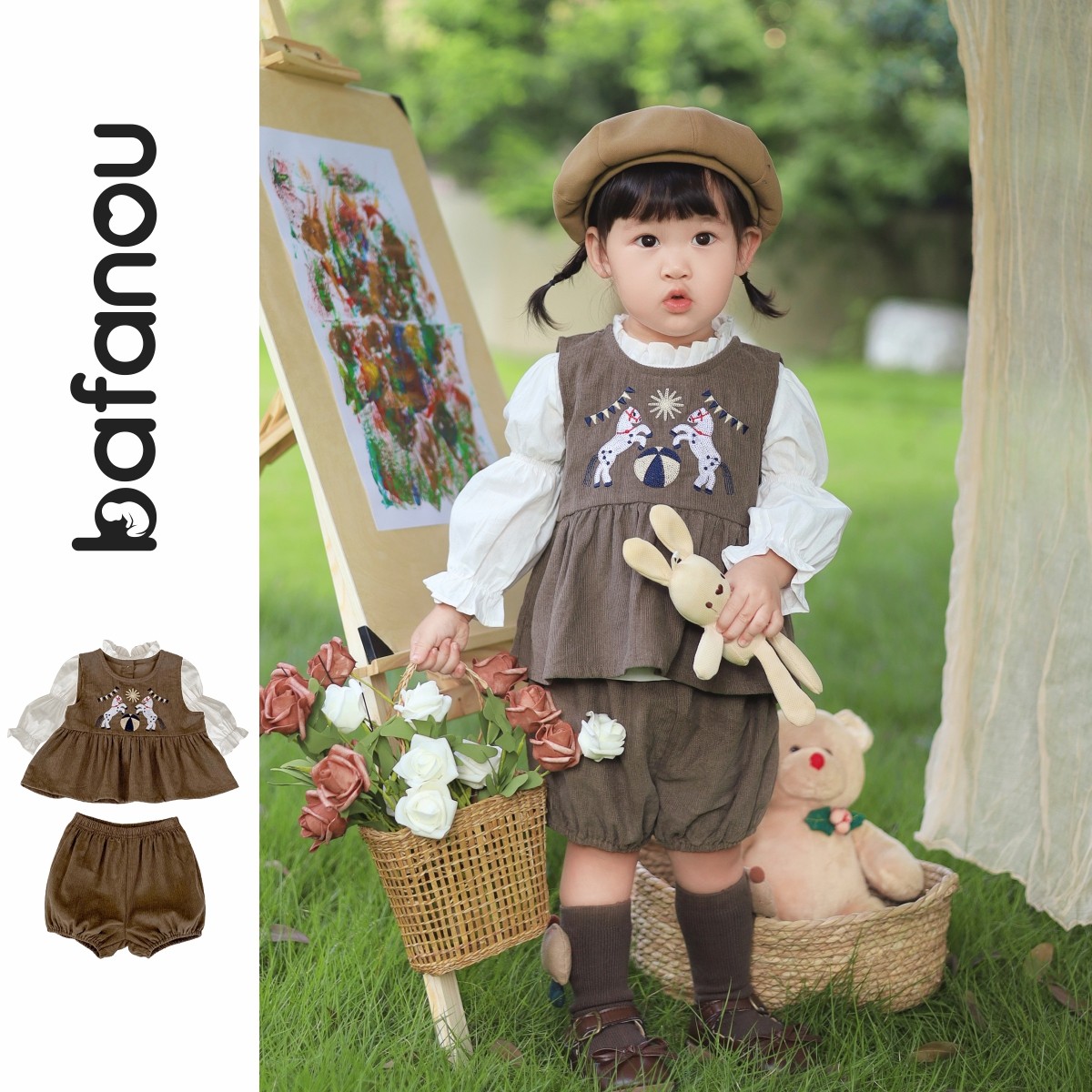 巴梵欧一岁宝宝春季套装洋气灯芯绒分体婴儿外出服2026新款韩系