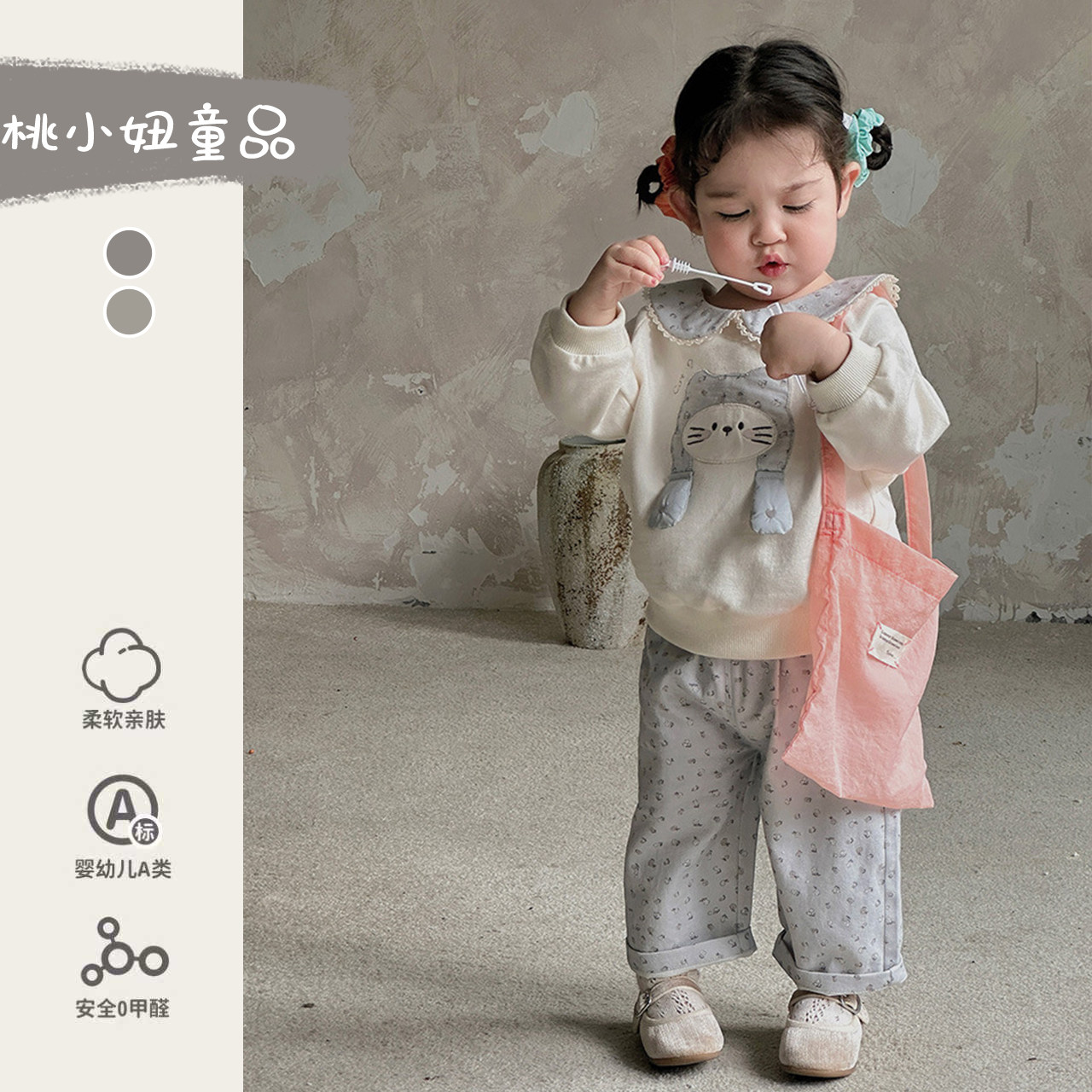 女宝宝春季套装2026新款超萌卡通分体碎花上衣裤子早春外出两件套