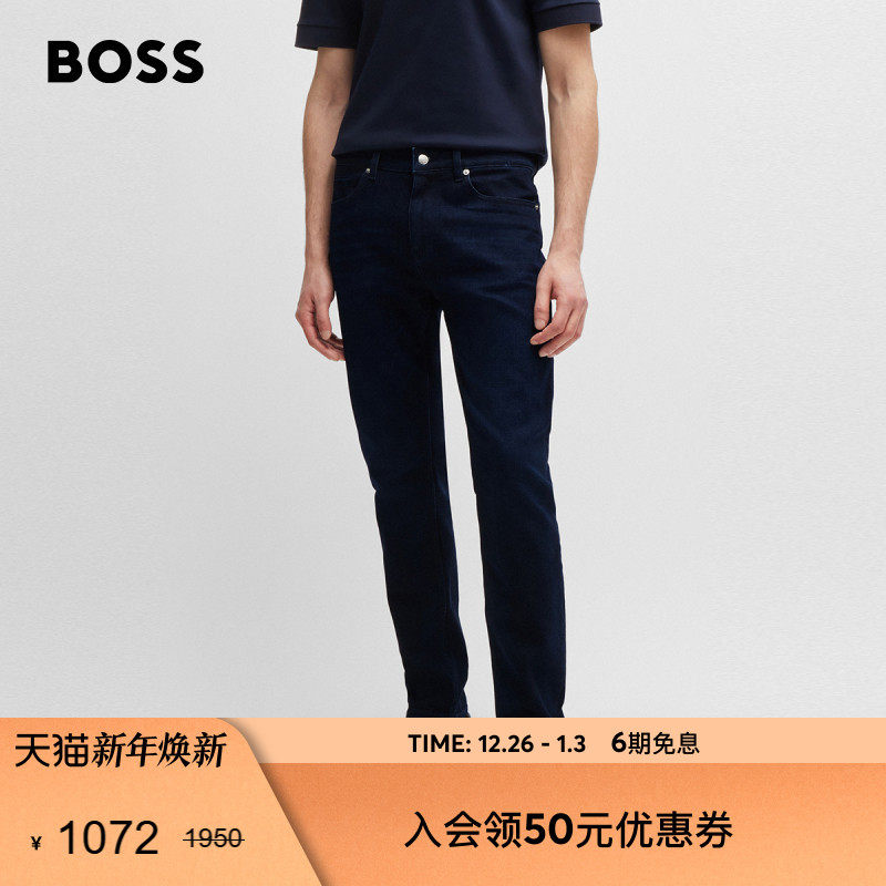 Navigare意大利小帆船深蓝色牛仔裤男士春秋季弹力直筒休闲长裤