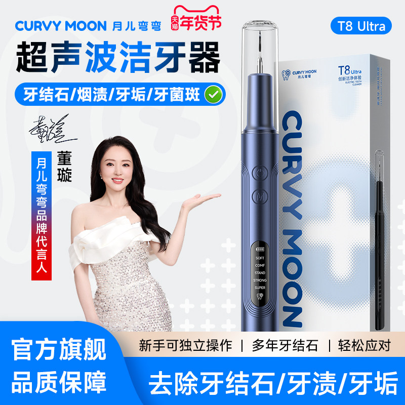 月儿弯弯超声波洗牙器冲牙结石去除神器家用洁牙仪牙齿清洁除牙垢