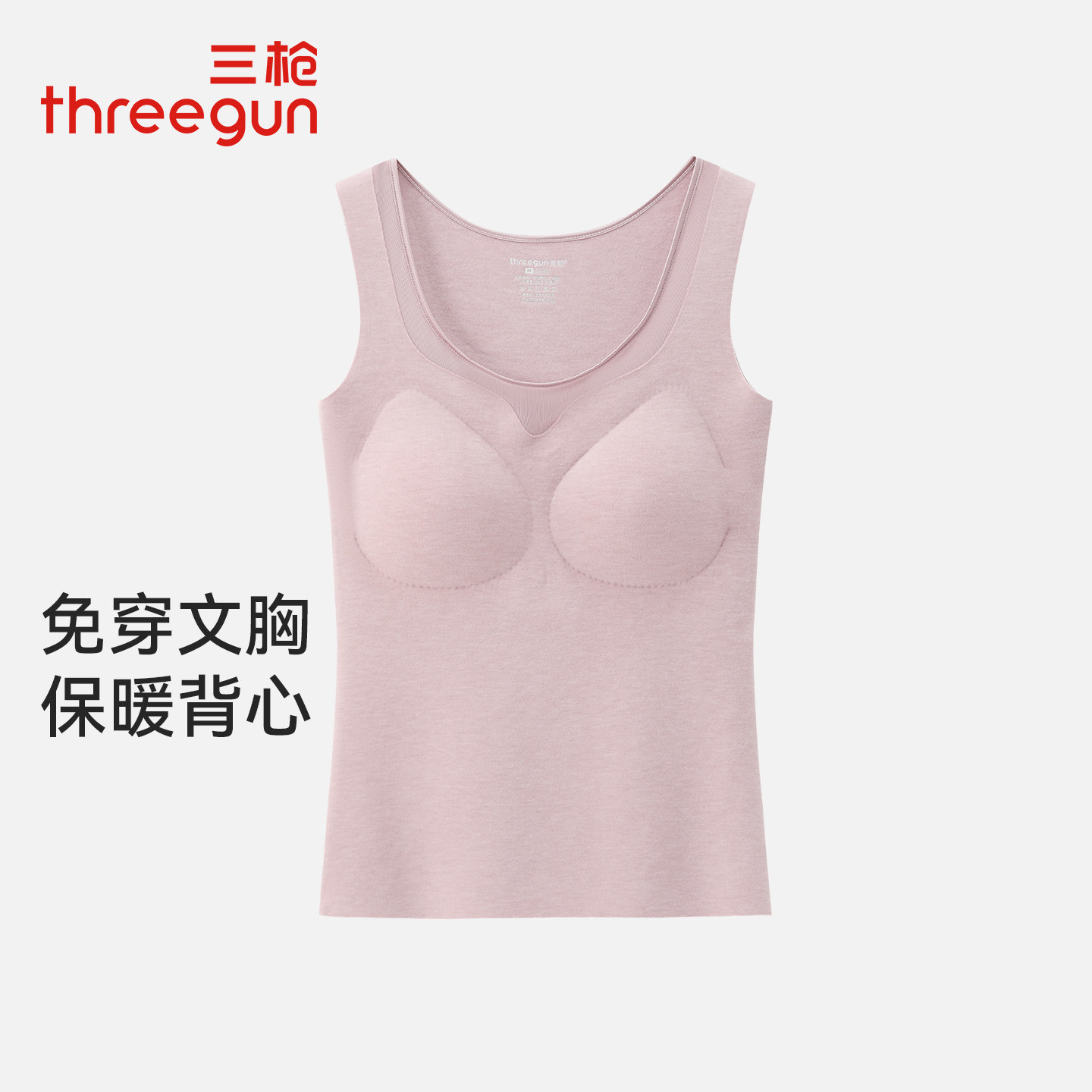 三枪秋冬时尚保暖女背心自带胸垫聚拢美胸薄绒打底衫修身打底内衣