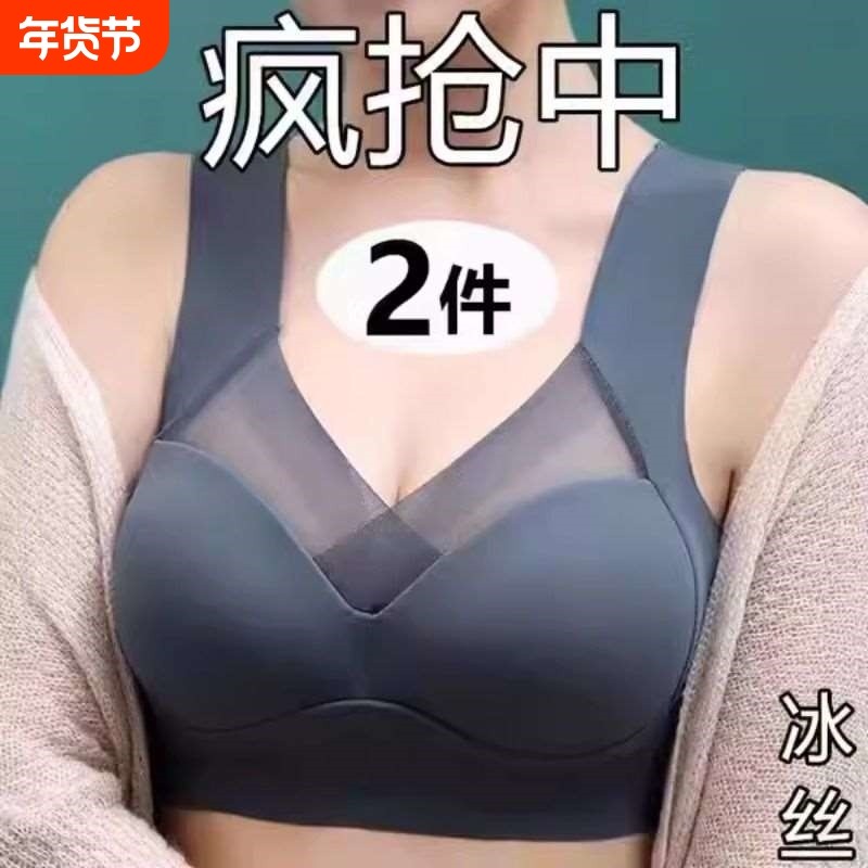 妈妈内衣文胸中年妇女老年人女背心式前扣大码薄款无钢圈纯棉胸罩