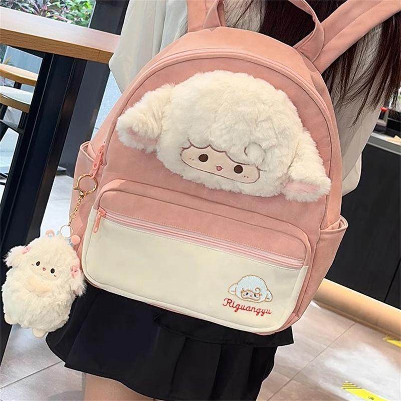 日系可爱小羊双肩包女2024新款卡通毛绒玩偶背包学生书包生日礼物