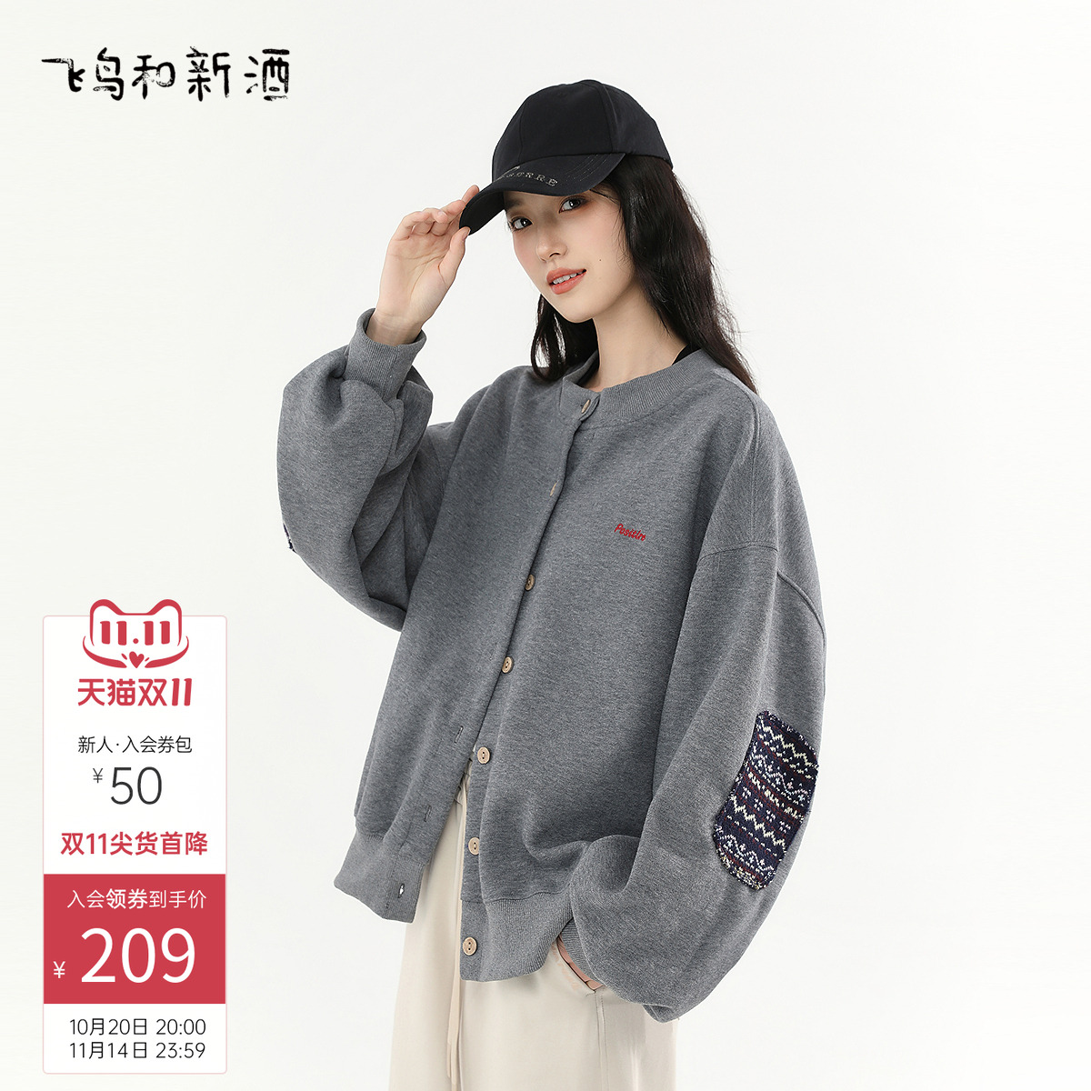飞鸟和新酒2025秋季新款时尚休闲小个子宽松灰色棒球服短款外套女