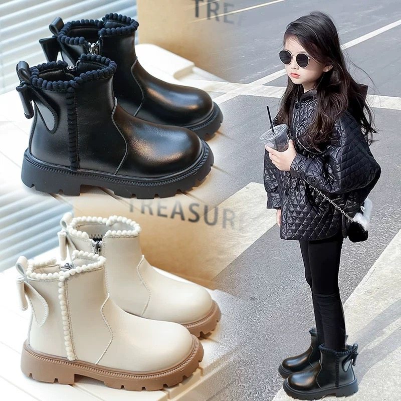 真皮女童短靴儿童靴子公主童靴2025秋冬新款女孩软底马丁靴小皮靴