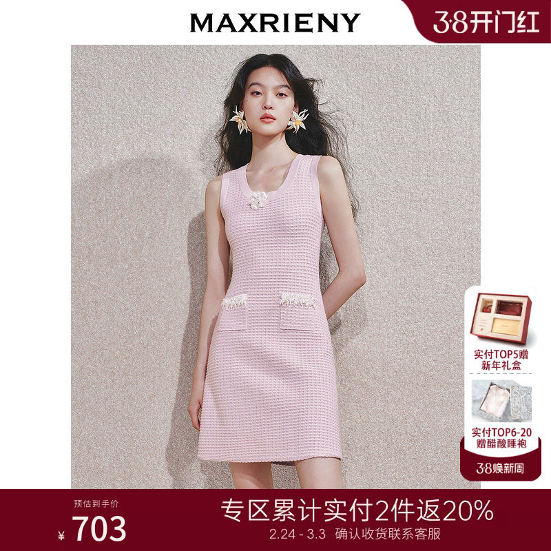 【2件8折】【商场同款】MAXRIENY肌理感连衣裙无袖挂脖吊带裙子