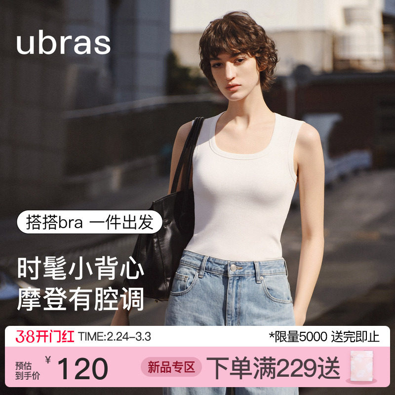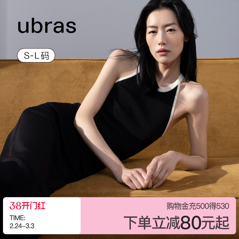 【刘雯同款】ubras撞色针织挂脖吊带背心内搭外穿辣妹无袖上衣女