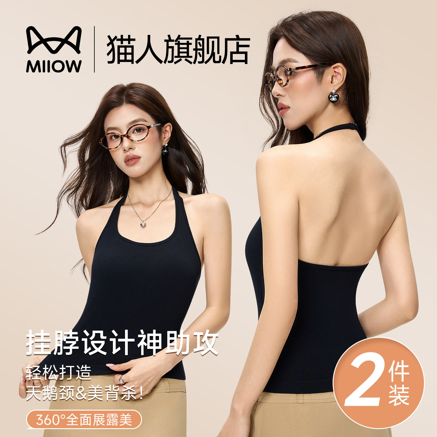 猫人挂脖吊带背心女带胸垫夏外穿内搭打底2026新款美背无袖上衣
